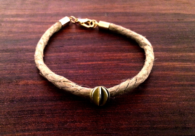 Brass sphere charm on hemp chord with clasp