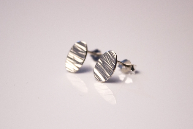 Approximate dimensions are 9mm X 6mm 'oval'. Each earring is handmade and slight variations in size occur, which means that each pair is uniquely yours, and dependant on where the hammer falls.