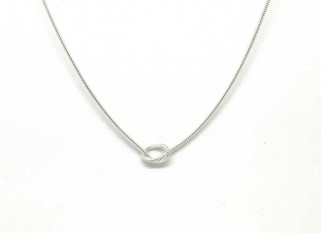 « Back to Necklaces Silver necklace with 'knot' detail Available in 43cm (standard) or 47cm (on request) length. Buy