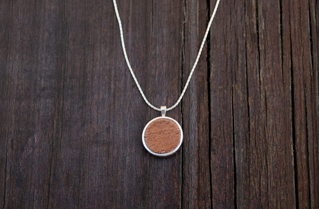 Silver Pendant With Wood Insert (small) on Silver Chain